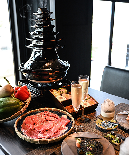 夕食は、伊賀焼の土鍋をお城の形に見立てた「伊賀城五桜閣」でいただく蒸し料理や、伊賀牛のしゃぶしゃぶをご堪能ください。